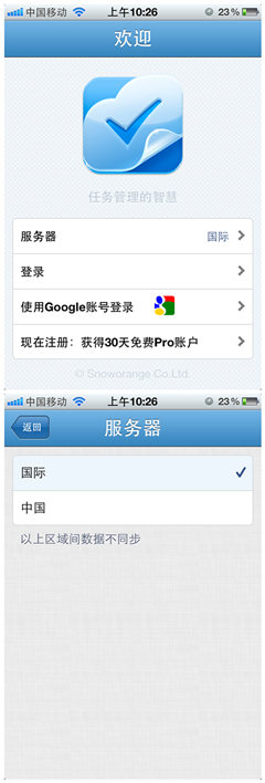 目前Doit.im是分中国区和国际区的服务器的,两个服务器是相互独立且数据不互通的。